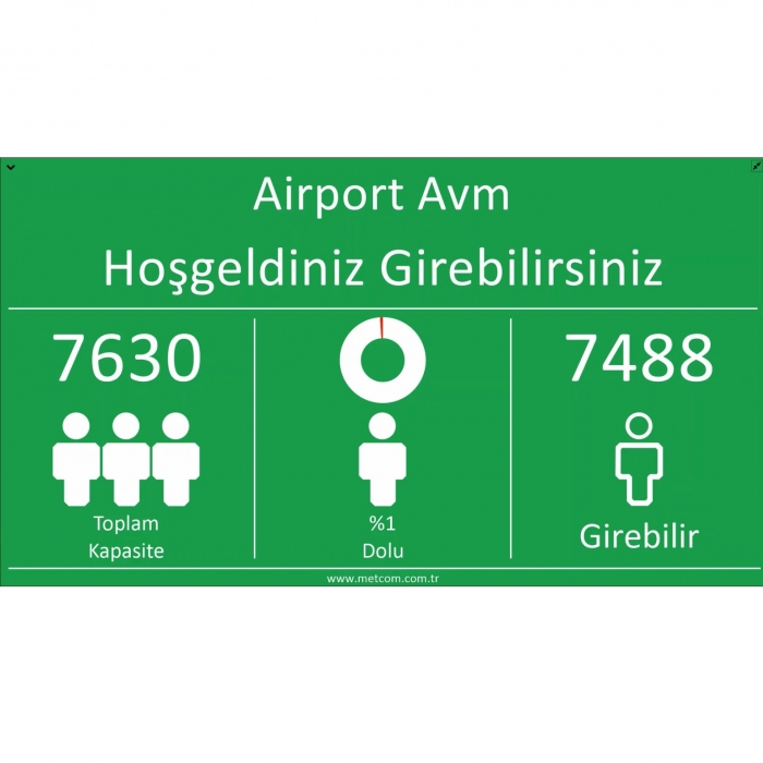 – İçerideki yoğunluk hakkında bilgi verir ve kapasite dolduğunda giriş noktasında uyarı ekranı oluşturur. Sesli ve görsel uyarı verir.